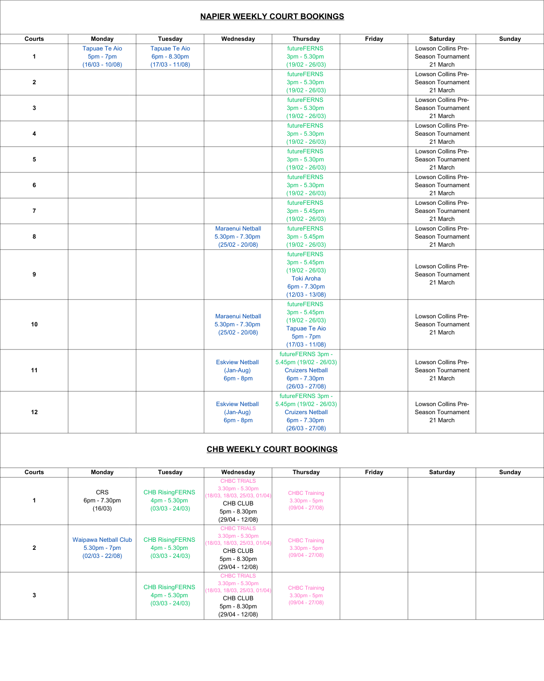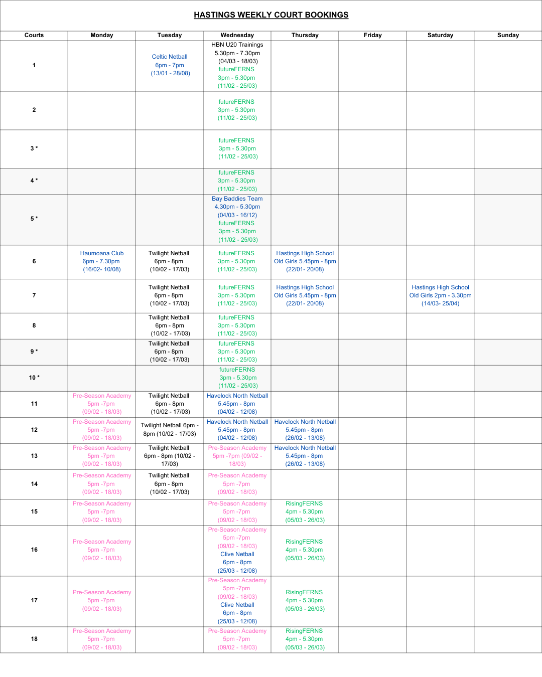 If you require more information on Court Bookings or are having any issues then please contact