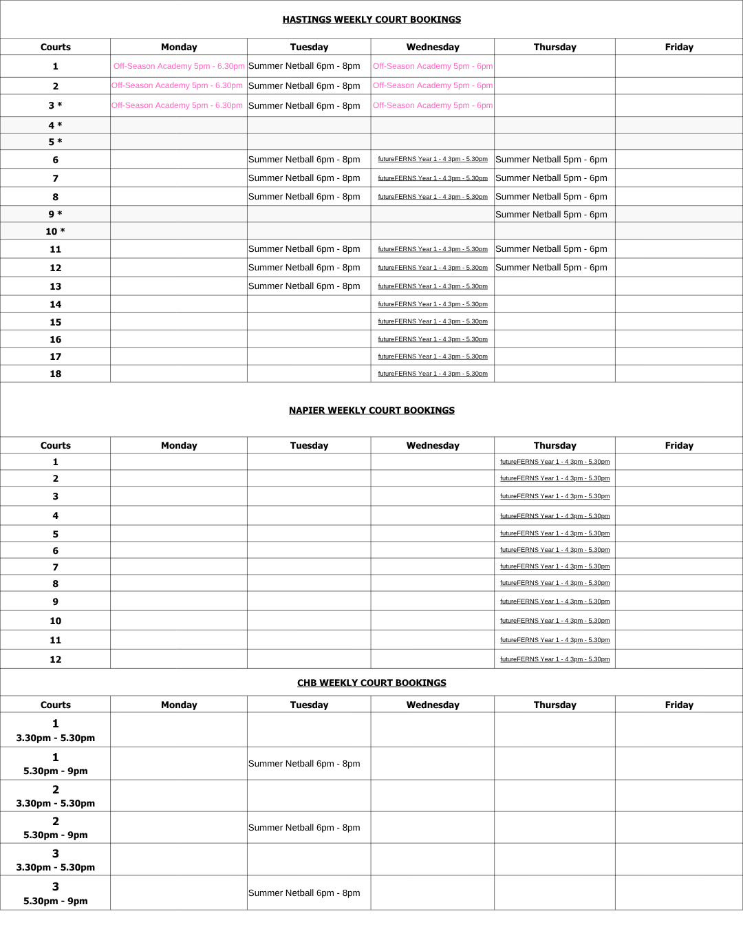 If you require more information on Court Bookings or are having any issues then please contact Samantha Chettleburgh, Hawke's Bay Netball Community Engagement Officer HERE