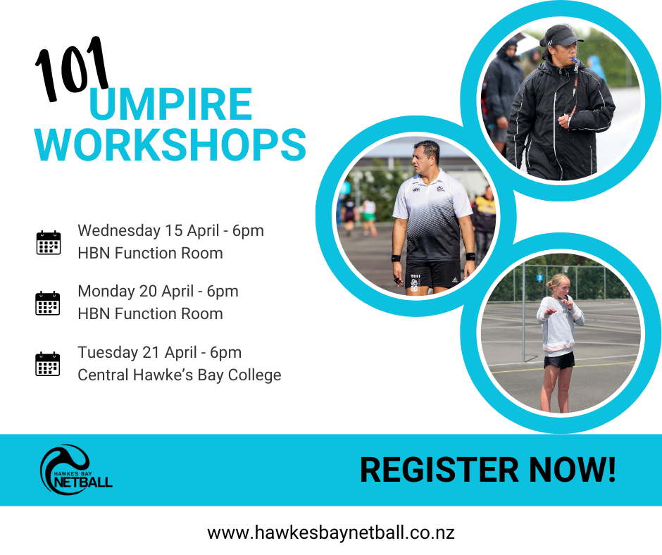 Wednesday 15 April, 6pm Hawke’s Bay Netball Function Room.